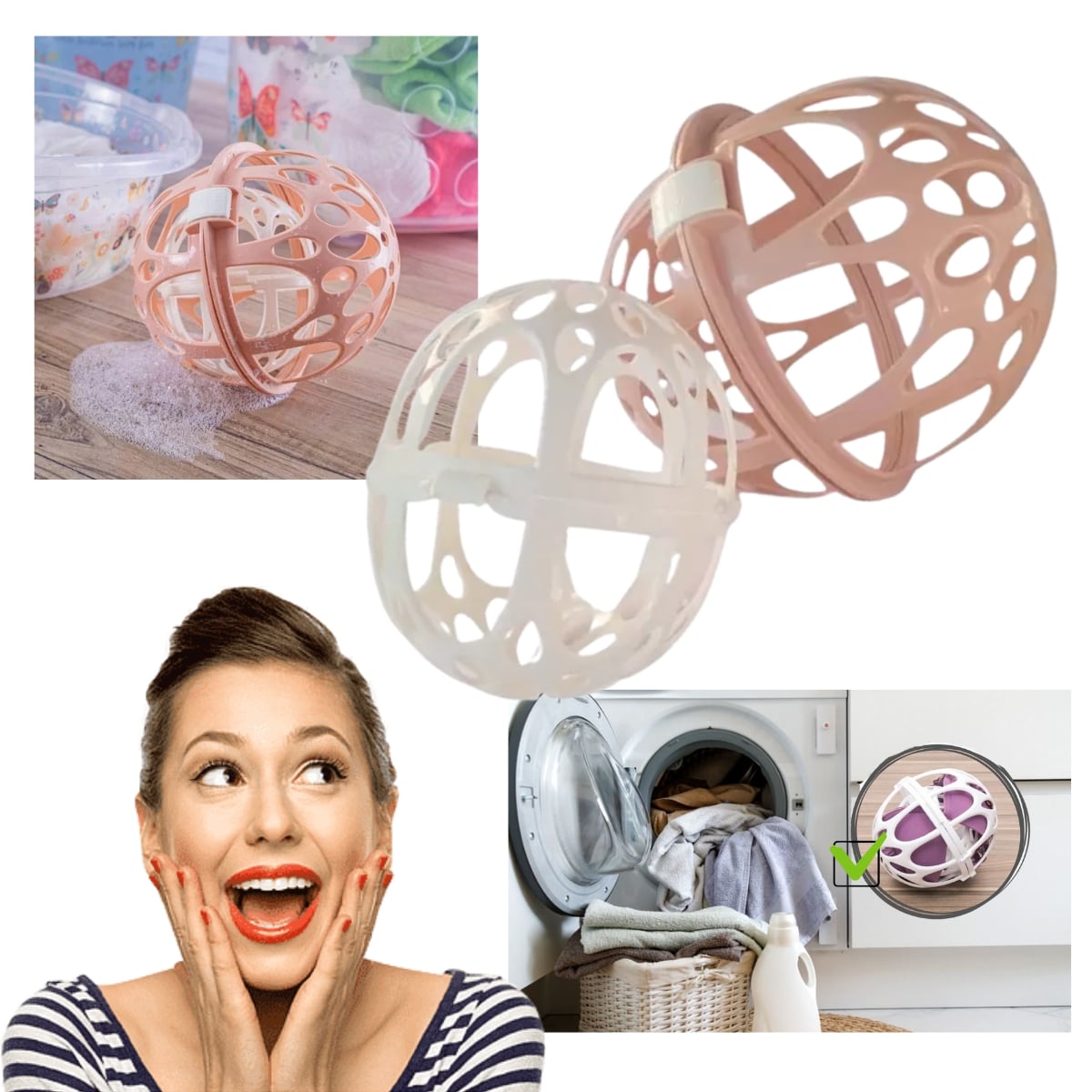 Abra seu Protetor Lava Sutiã e remova e a esfera pequena. Coloque o sutiã dentro da peça aberta, acomodando os bojos em cada metade da esfera. Coloque a esfera pequena em cima de um dos bojos. Feche a esfera grande e trave para que ela não abra e solte o sutiã durante a lavagem. Quando fechado, a esfera pequena deve ficar travada entre os bojos do sutiã, impedindo que a peça intima deforma durante a lavagem.